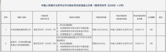 近日,中国人民银行北京市分行官网显示,中信消费金融有限公司(以下简称“中信消金”)因信用信息管理违规被行政处罚。