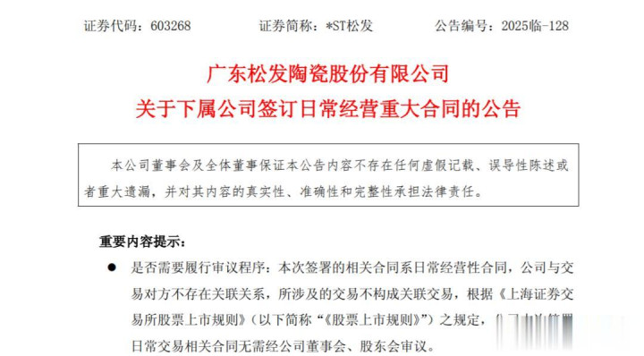 值得注意的是,在宣布签订重大经营合同的同一天,*ST松发还发布一则接获政府补助的公告。